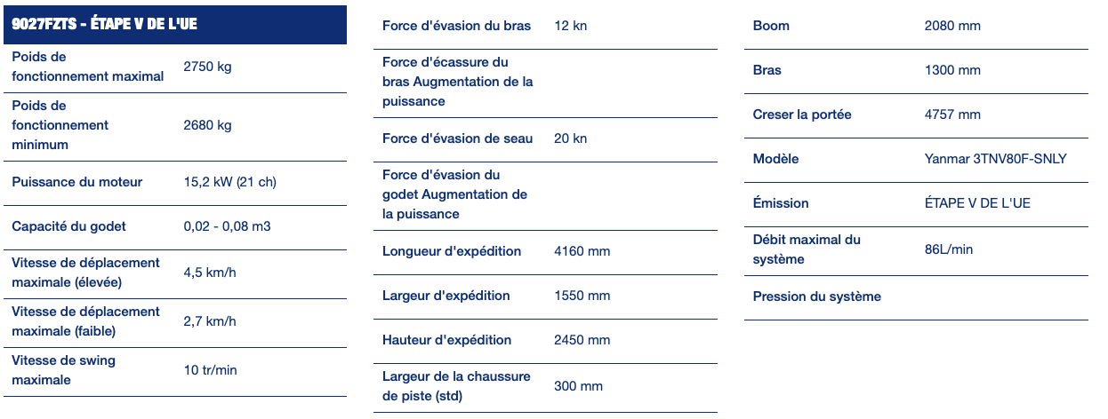 • FAIBLE COÛT TOTAL DE POSSESSIONAvec le nouveau 9027FZTS, nous avons créé quelque chose de différent. Une machine compacte exceptionnellement performante qui donne aux opérateurs tout ce qu’ils veulent – sans compromis.