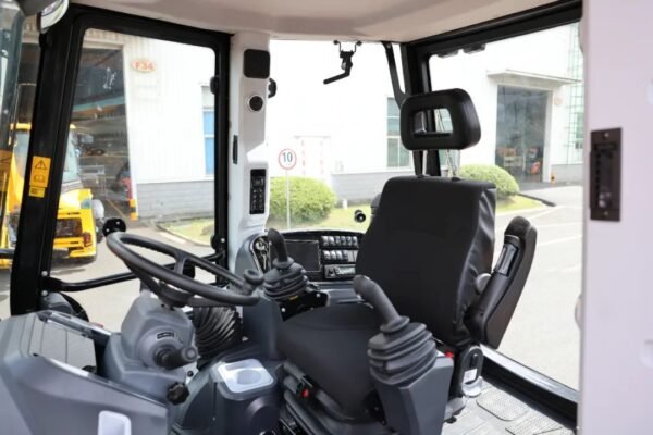 La cabine ergonomique a été pensée pour le confort de l’opérateur. Elle offre une bonne visibilité à 360°, un poste de commande intuitif, ainsi qu’un espace de travail agréable réduisant la fatigue, même lors de longues journées de chantier.